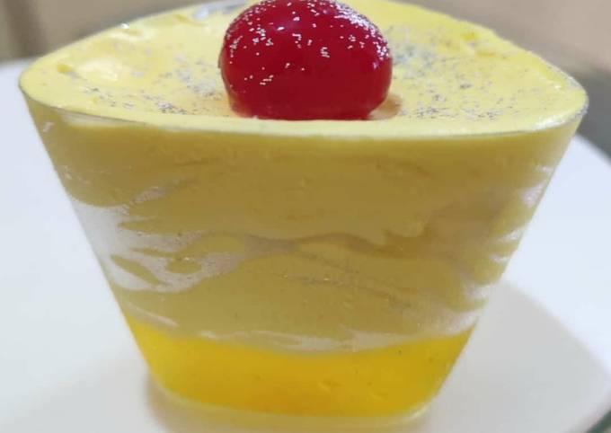 - In glass in the base add some pineapple pulp add batter of condensed milk and decorate with cherry and eatable silver sparkle.rest for cool ready to serve..